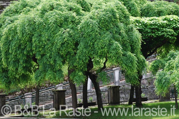 Gli ambienti del B&B La Raste sono ariosi e solari, dalle connotazioni naturali, con soffitti con travi a vista in legno naturale e muri tinteggiati con fresche tonalità abbinate agli ambienti e agli arredi: dal rosso della camera biancospino, con bagno verde...